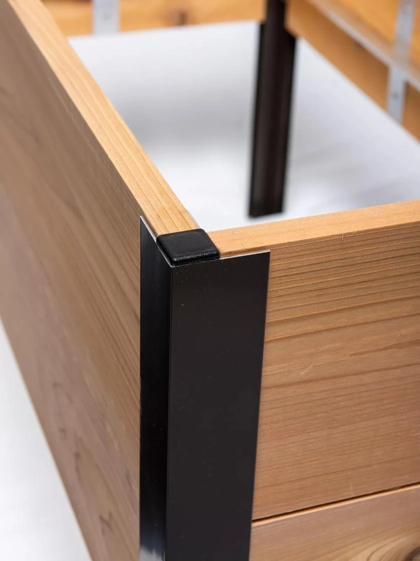 Each bed includes four industrial-strength aluminum corners; 7-1/4″ H x 1″ rot-resistant cedar or cypress lumber that’s been precut to the proper lengths, hardware and instructions. Easy assembly — just slip the boards into the corners and screw them in place. (12′ beds use two 6′ boards with in-line connectors.) Because we build these raised beds in our Vermont workshop, we’re able to optimize both quality and cost.