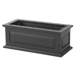 The Savannah wood window box looks charming on any windowsill or functions beautifully as a free-standing planter. Features classic raised panels on each side. Plastic footpads prevent moisture absorption when the planter rests on your patio or deck. Mounting brackets not included. Arrives fully assembled.