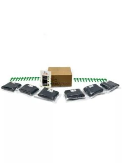 - Non-woven polypropylene (weed fabric), polyvinyl alcohol dissolvable film (seed pouches), dehydrated coco coir, plastic PLA garden stakes, organic & non-GMO seeds